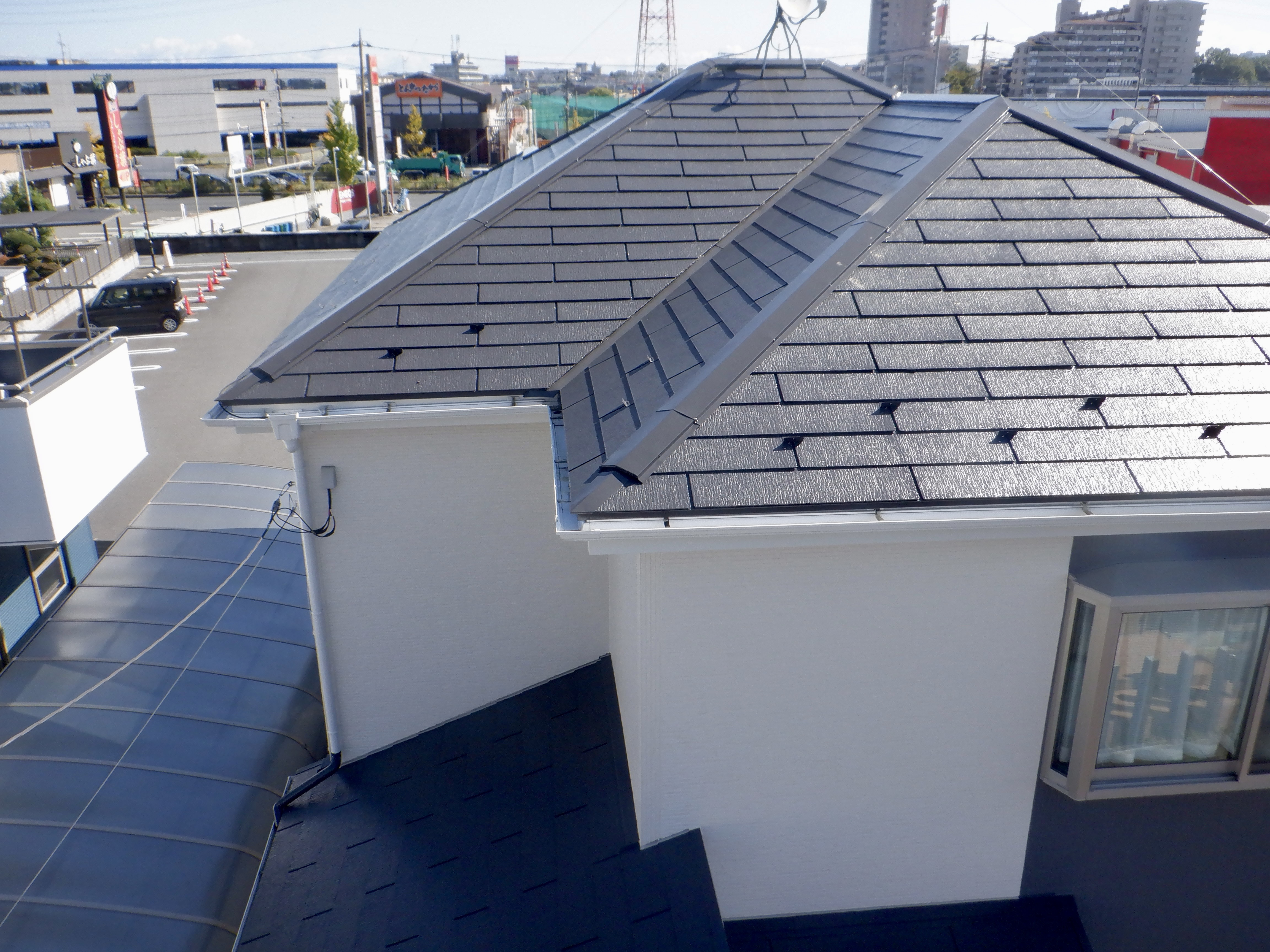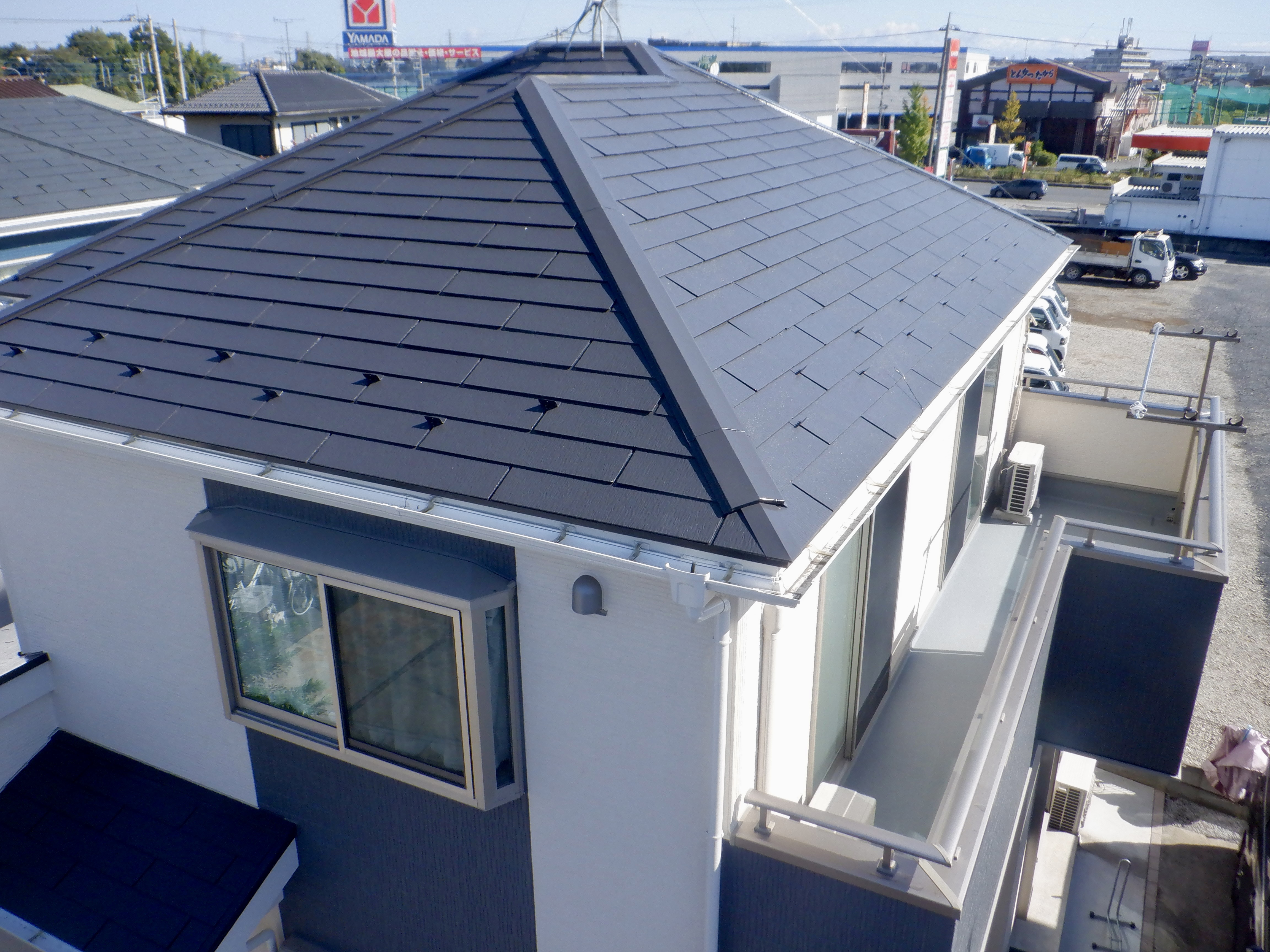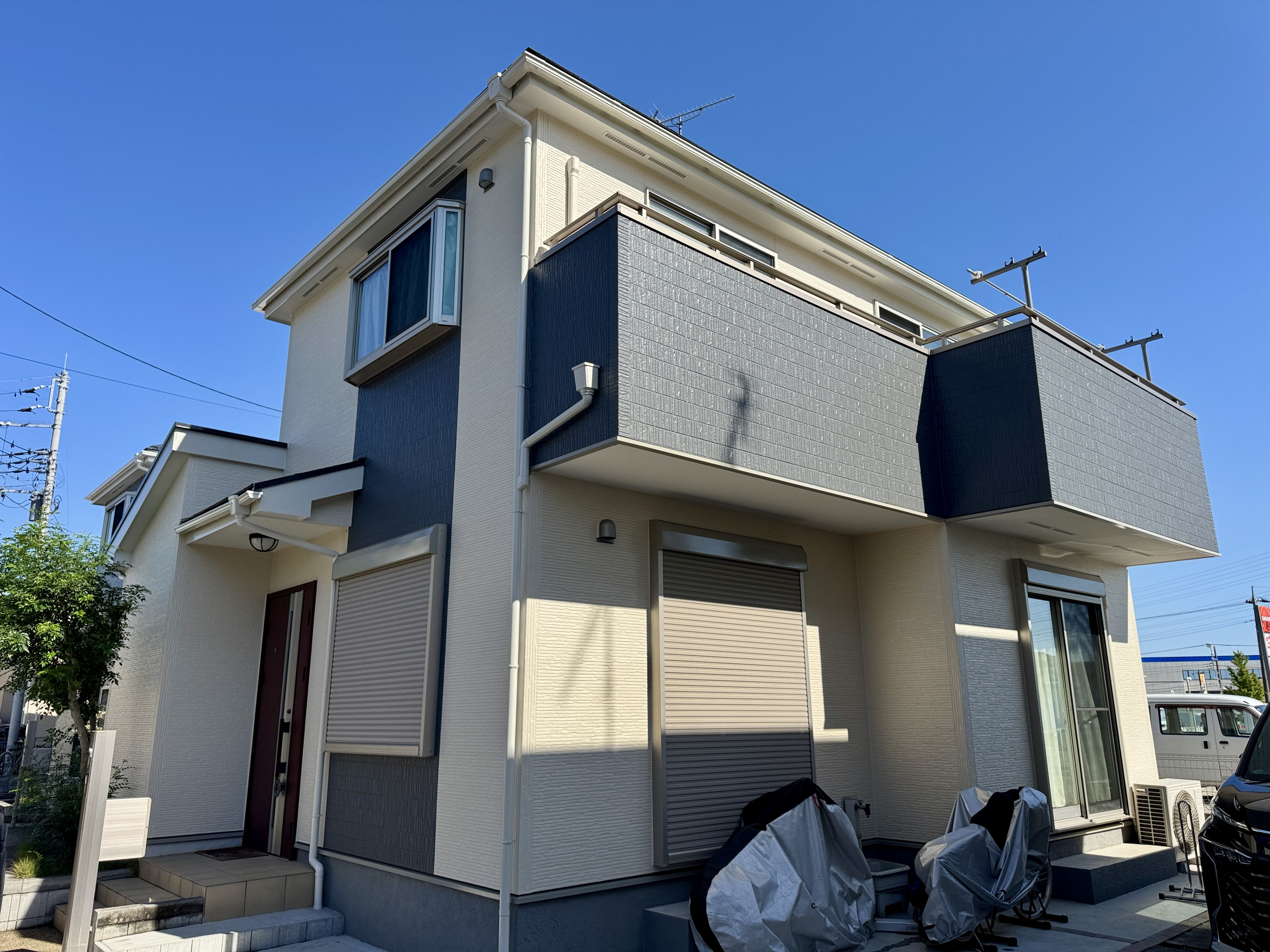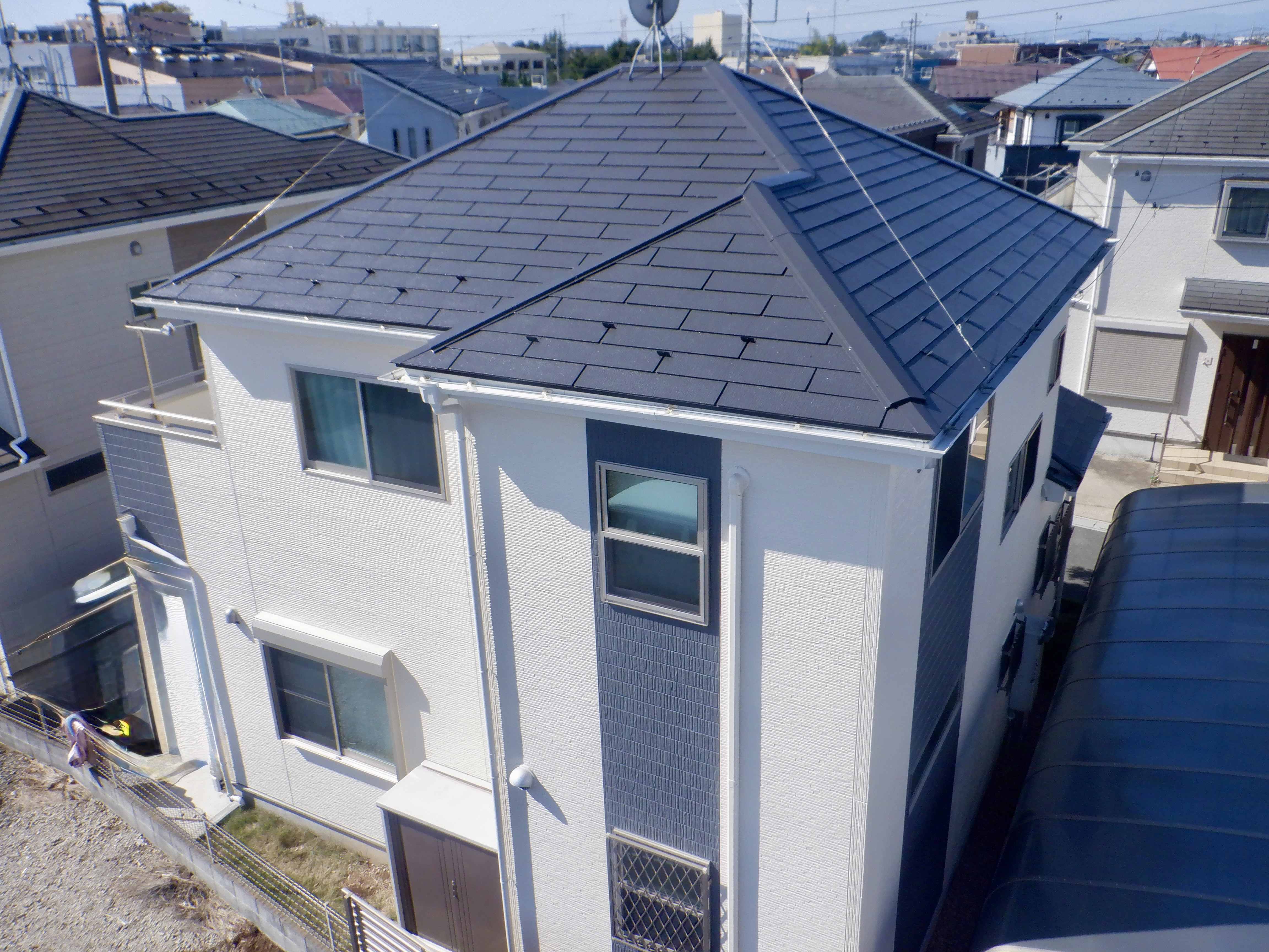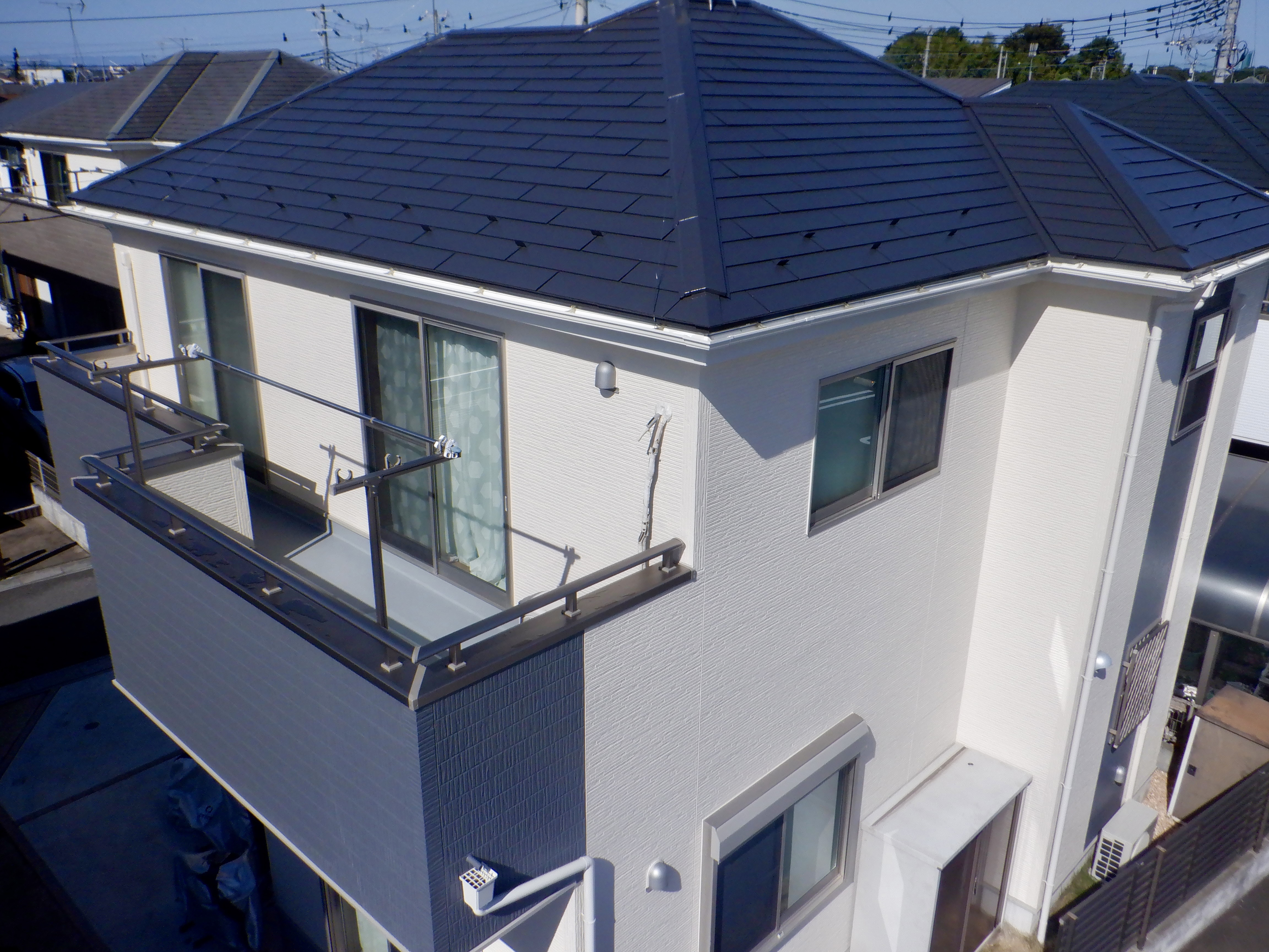 施⼯内容 | コロニアル屋根塗装工事 外壁塗装工事 目地シーリング打替え 附帯箇所塗装 バルコニー床トップコート仕上げ |